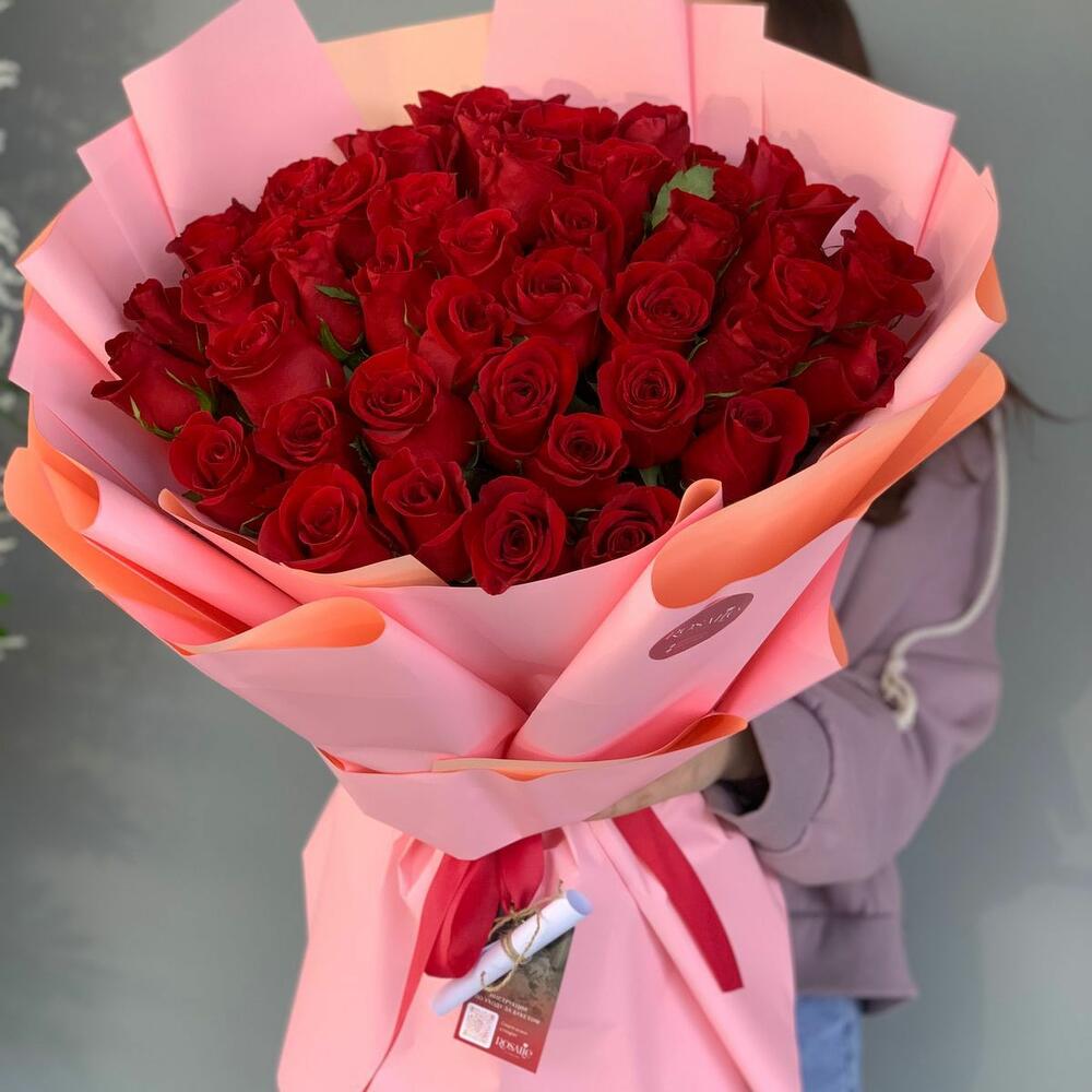 Роза 70 см - 51 шт. Оформление - 1 шт.
